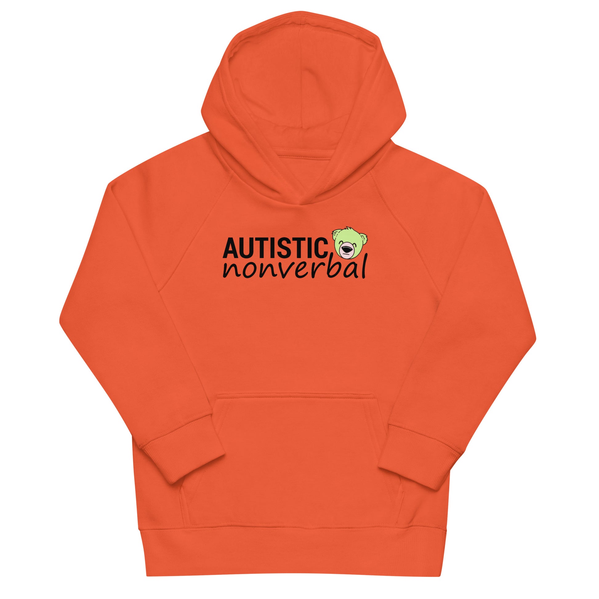 Introducing the Autistic Nonverbal Kids Hoodie in vibrant orange—a beacon of comfort and compassion. Crafted with precision, this premium eco hoodie is more than just a garment; it's a statement. Made from a blend of 80% organic cotton and 20% recycled polyester, with raglan sleeves and a jersey-lined hood, it provides a snug embrace for your little one. The self-fabric neck tape and half-moon inside collar add thoughtful touches to the design.